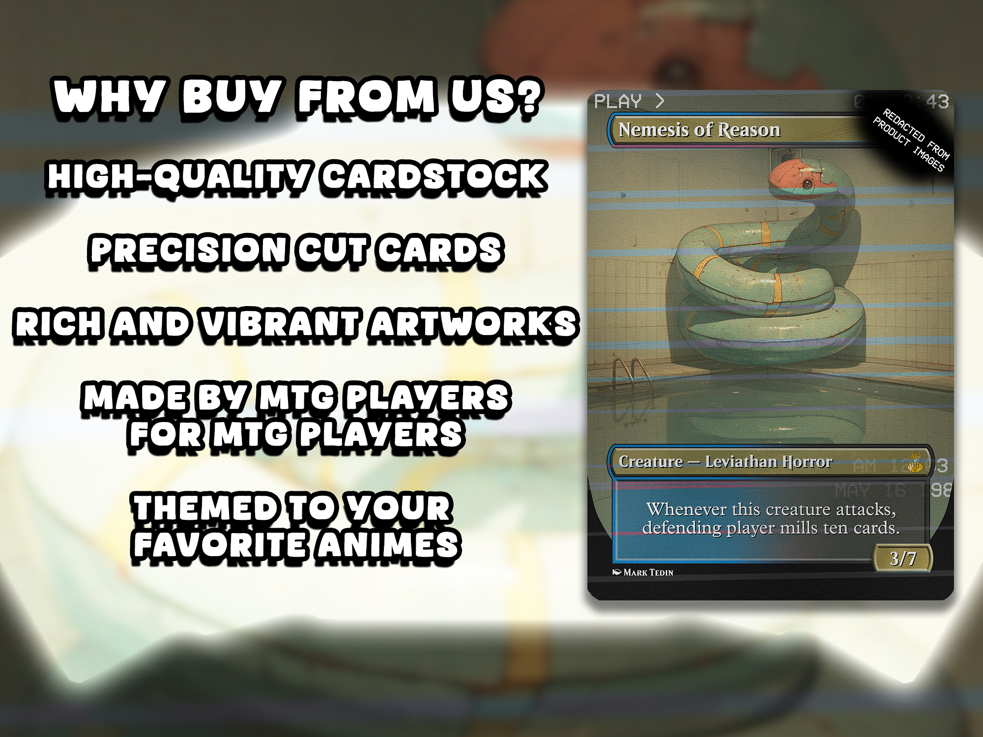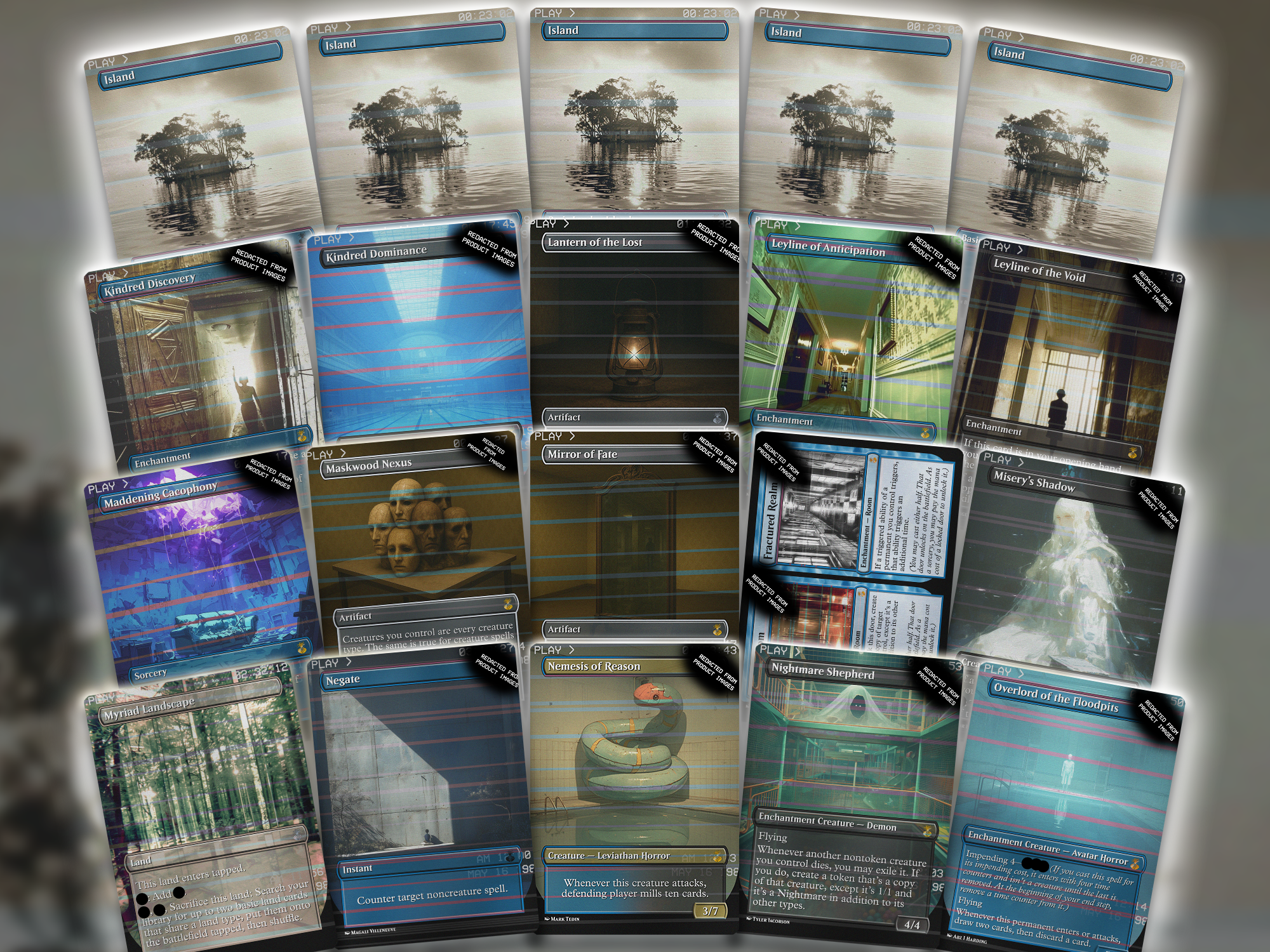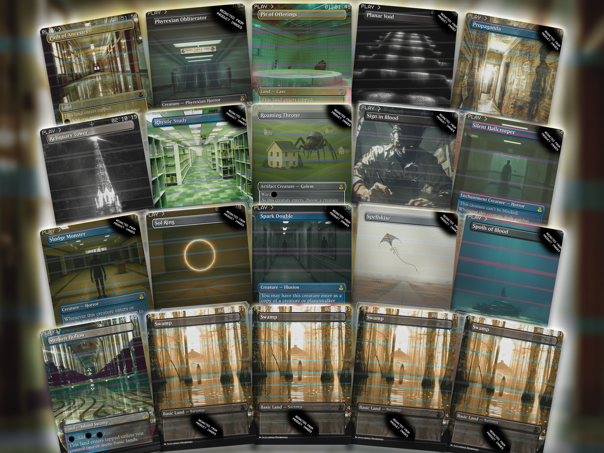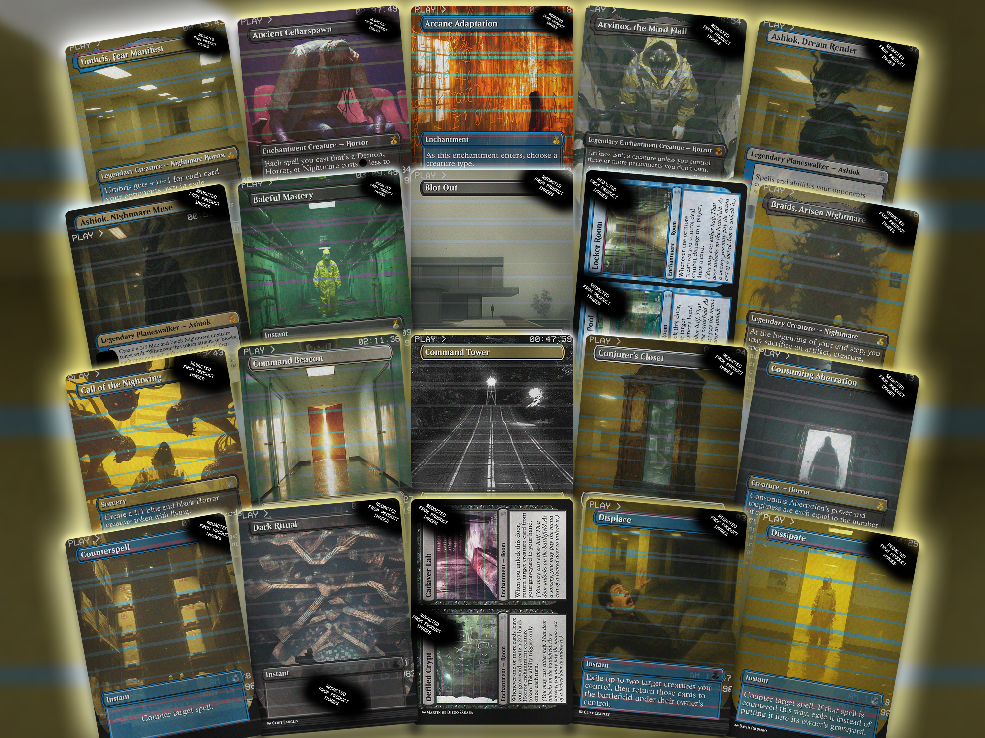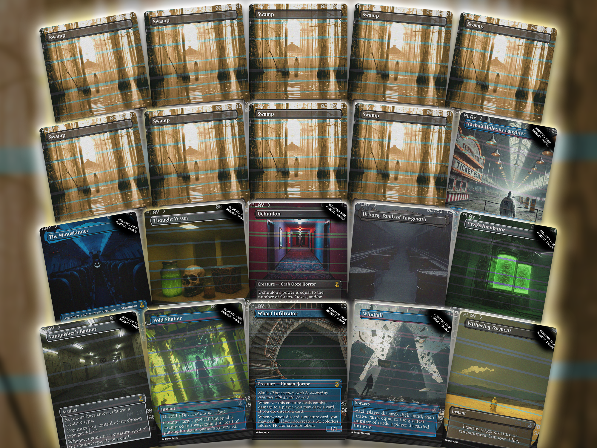 This is a full 100-card proxy EDH deck built around Umbris, Fear Manifest, soaked in analog horror and VHS glitch vibes. The art features liminal spaces, unsettling entities, and that creepy nostalgic dread that hits like a corrupted tape. If you’ve ever wanted to exile people into the void while giving them psychological whiplash, you’re gonna love this one.