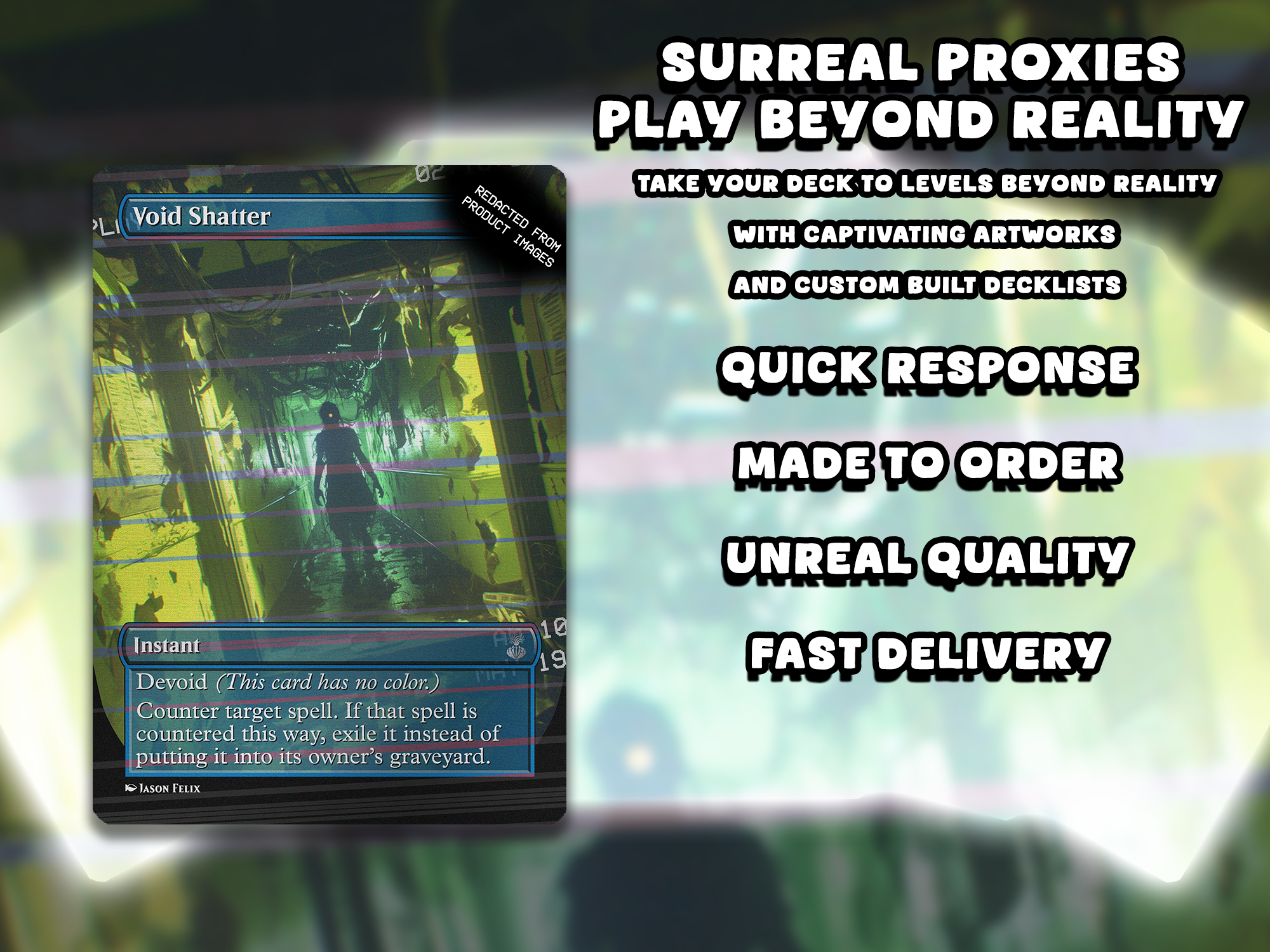 These are fan-made alter proxies. They are NOT official Wizards of the Coast products and are not tournament legal. Just made by a fellow fan who loves the game and the creepy stuff surrounding it.